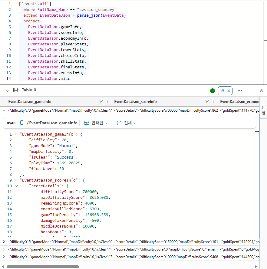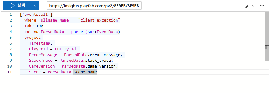 PlayFab 을 통한 에러 데이터 수집 쿼리