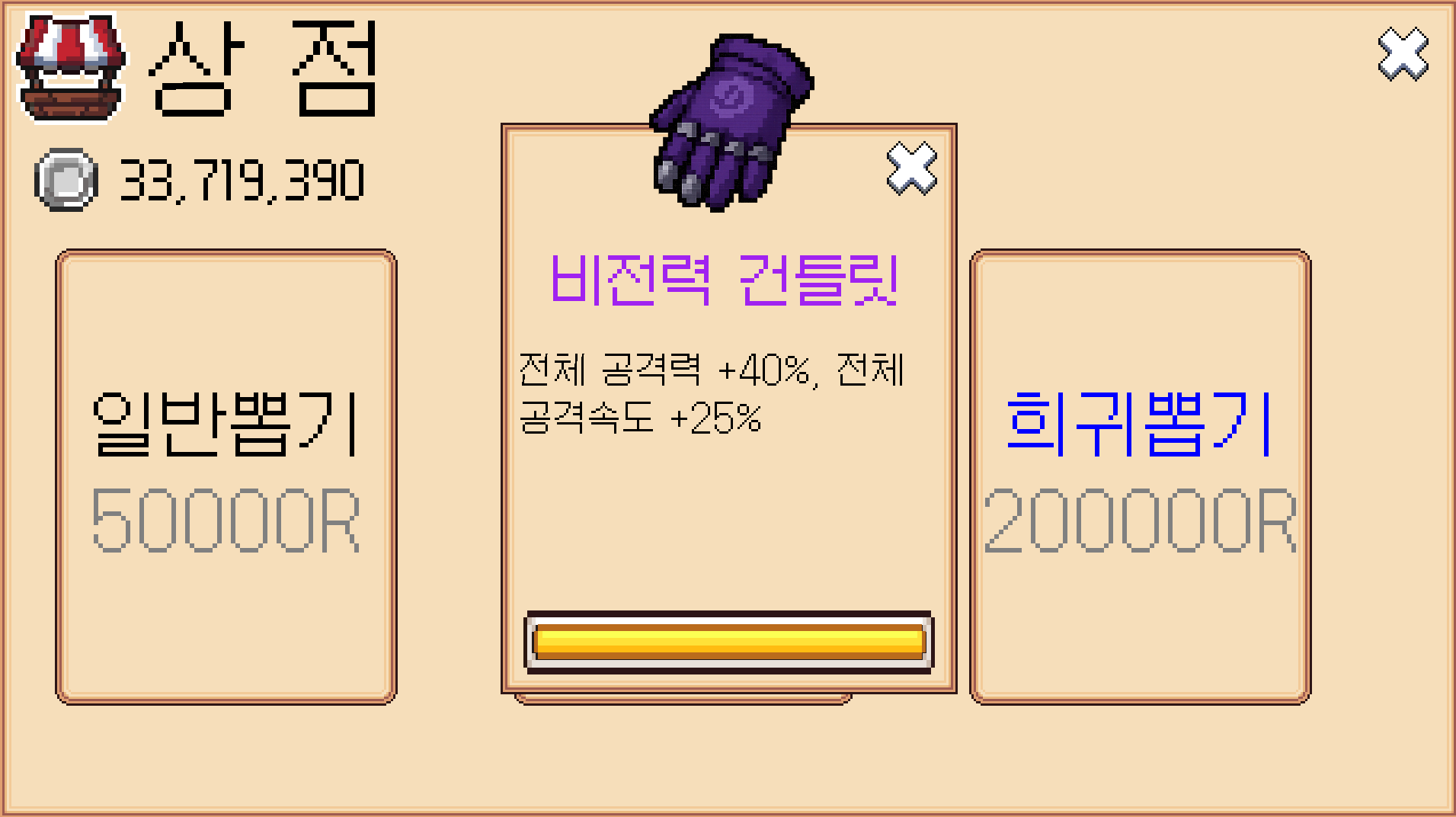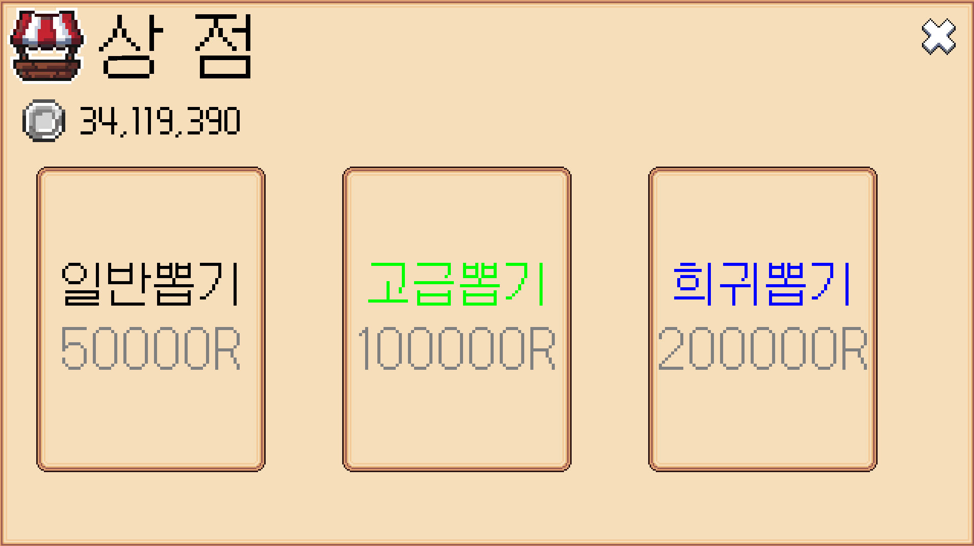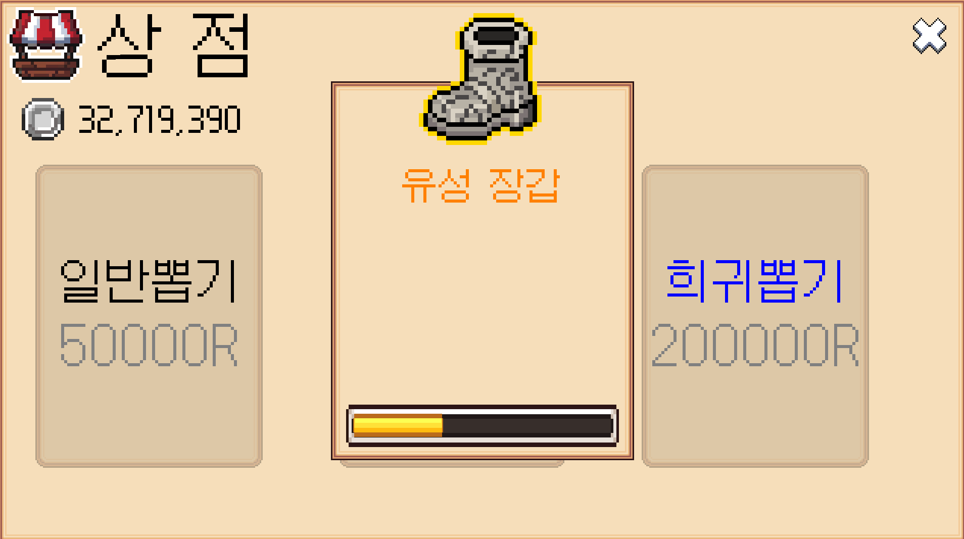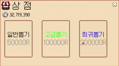 - 보유한 RCoin을 사용하여 상점에서 새로운 장비 뽑기