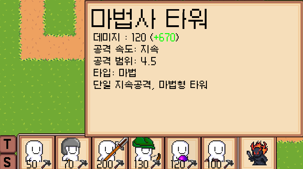 - [ 타워 건설 → 적 처치 → 재화 획득 ] 전투 루프 반복